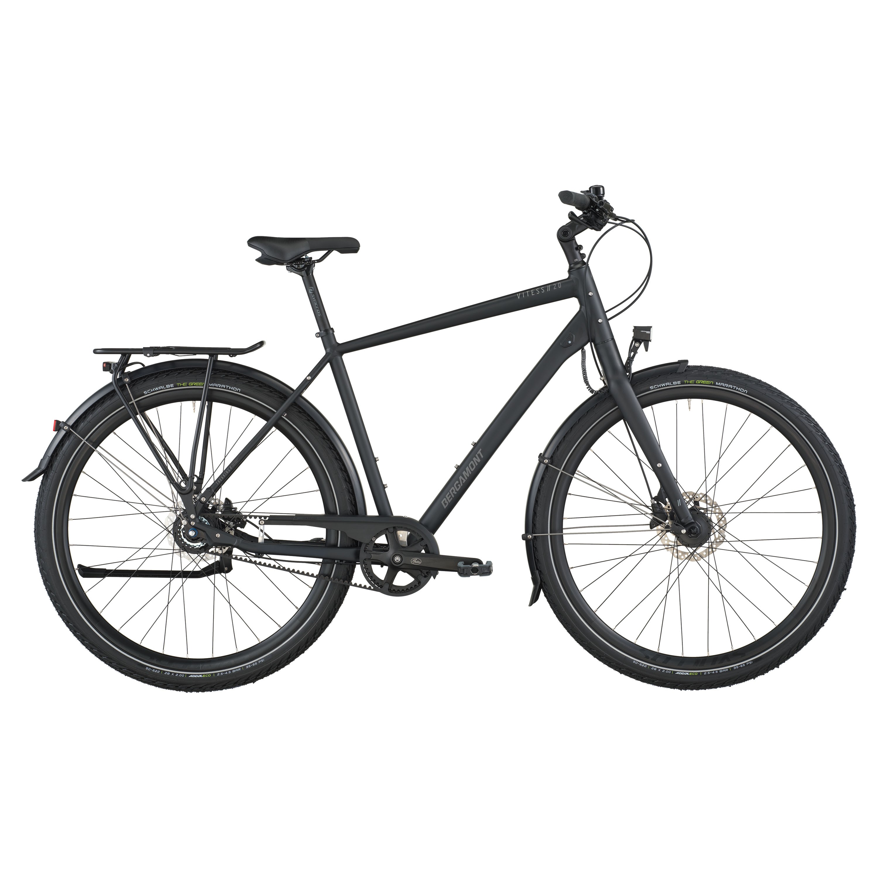 Model Vitess 20 jest wyposażony w lekki, sztywny widelec aluminiowy i sztycę podsiodłową, które pozwalają zmniejszyć masę roweru. 8-biegowa wewnętrzna piasta z przekładnią w połączeniu z napędem pasowym wymaga bardzo niewielkiej konserwacji. Odporne na przebicie opony Schwalbe Marathon Performance i hydrauliczne hamulce tarczowe Shimano zapewniają bezpieczną i niezawodną jazdę.