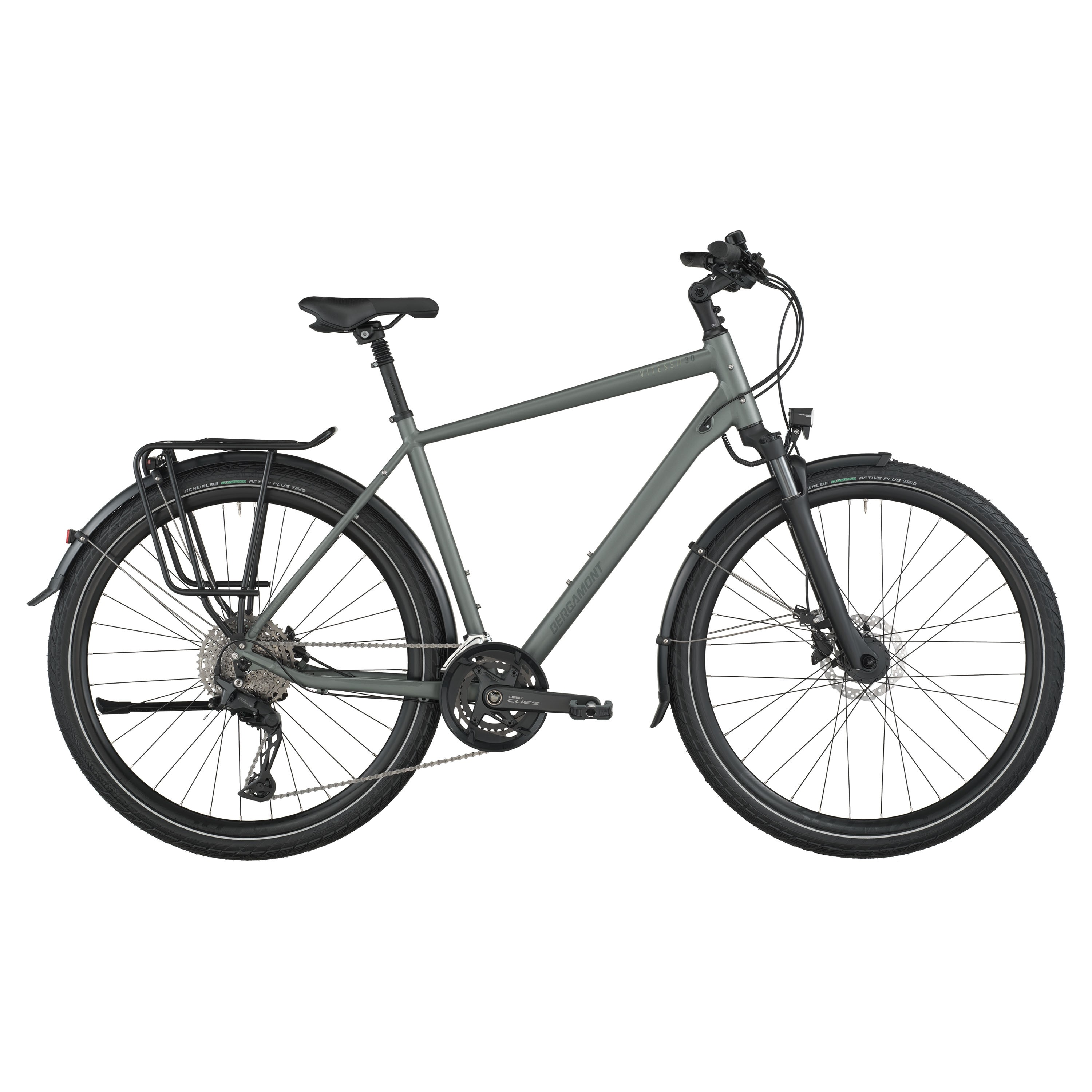 Model Vitess 30 jest wyposażony w amortyzowany widelec Suntour i amortyzowaną sztycę podsiodłową dla dodatkowego komfortu. 2x11 -biegowy napęd Shimano Cues zapewnia płynną i wydajną zmianę biegów. Odporne na przebicie opony Schwalbe Energizer Active Plus i hydrauliczne hamulce tarczowe Shimano zapewniają bezpieczną i niezawodną jazdę.